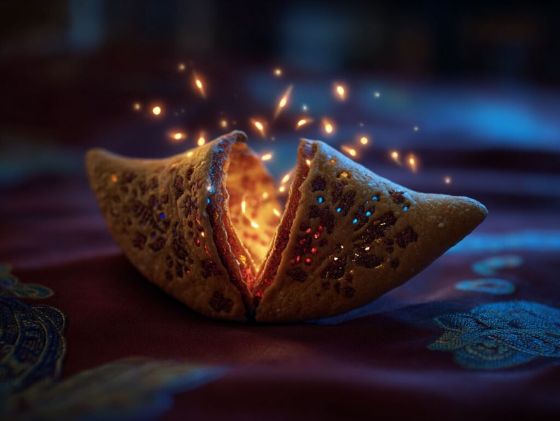 Fortune cookies are a popular crisp and sugary cookie wafer, made from flour, sugar, vanilla and sesame seed oil.